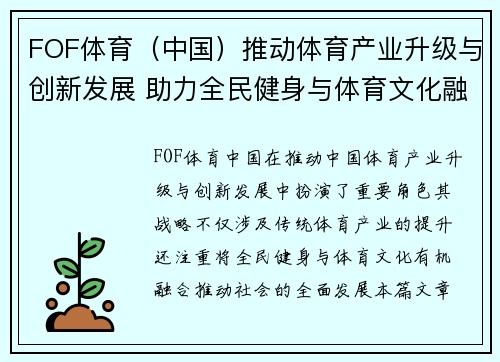 FOF体育(中国)在推动中国体育产业升级与创新发展中扮演了重要角色,其战略不仅涉及传统体育产业的提升,还注重将全民健身与体育文化有机融合,推动社会的全面发展。本篇文章将从四个方面详细分析FOF体育如何通过其创新思维、战略布局、品牌塑造和技术应用,积极助力中国体育产业的升级与创新,同时促进全民健身与体育文化的融合。本文首先简要回顾FOF体育的发展背景,接着从其在产业升级、创新发展、全民健身倡导以及体育文化推动方面的具体举措进行深入探讨,最后总结FOF体育(中国)在新时代背景下的重要性和未来前景。